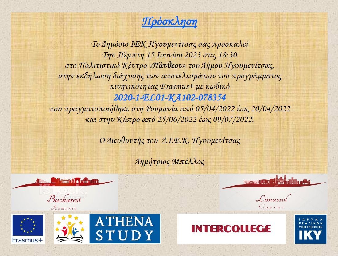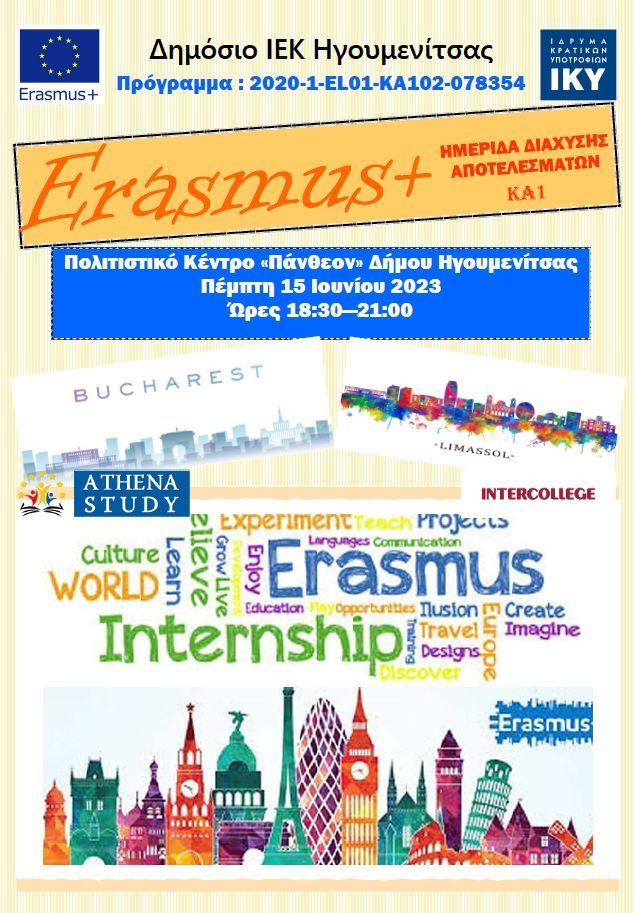Eκδήλωση διάχυσης αποτελεσμάτων προγράμματος κινητικότητας Erasmus+ από το ΔΙΕΚ Ηγουμενίτσας_Πολιτιστικό Κέντρο «Πάνθεον» - Ηγουμενίτσα_15.06.2023