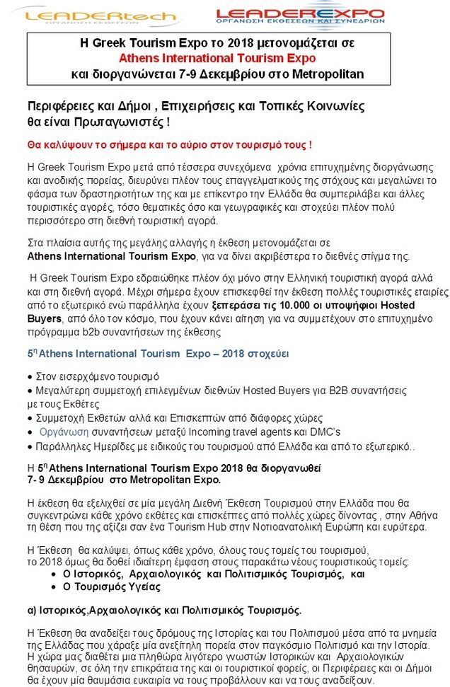Athens International Tourism Expo_Metropolitan Expo, Αθήνα_07-09.12.2018