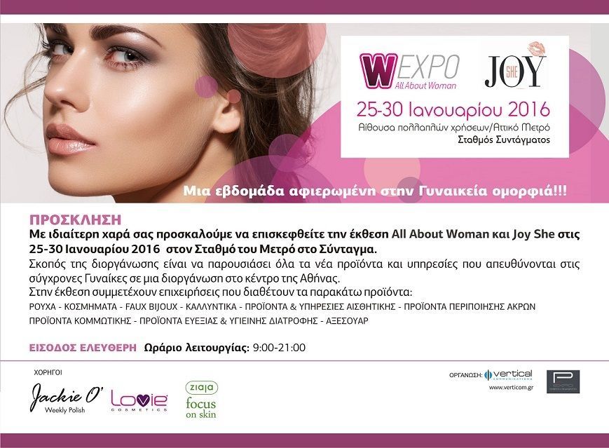 Joy She & Woman Expo_Έκθεση για τη γυναικεία ομορφιά_Μετρό Συντάγματος, Αθήνα_25 - 30 Ιανουαρίου 2016.
