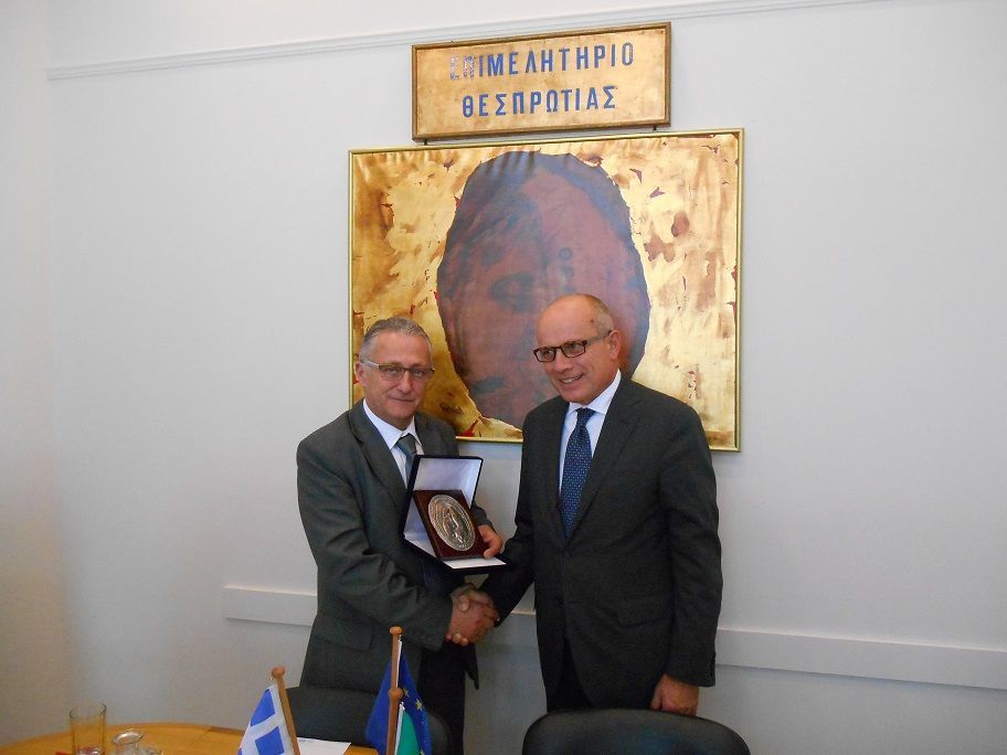 Ο κος Πρέσβης ευχαρίστησε τον Πρόεδρο για την θερμή του υποδοχή, εξήρε το φυσικό κάλος, τα έργα υποδομής και την δυναμική της περιοχής, επεσήμανε την ανάγκη ισχυροποίησης της συνεργασίας μεταξύ των διασυνοριακών περιοχών με έργα και όχι με λόγια, ασχέτως λαθών του παρελθόντος, και εκδήλωσε ενδιαφέρον για την διερεύνηση εγκατάστασης Ιταλικών επενδύσεων, φιλικών προς το περιβάλλον στην ευρύτερη περιοχή της Θεσπρωτίας.