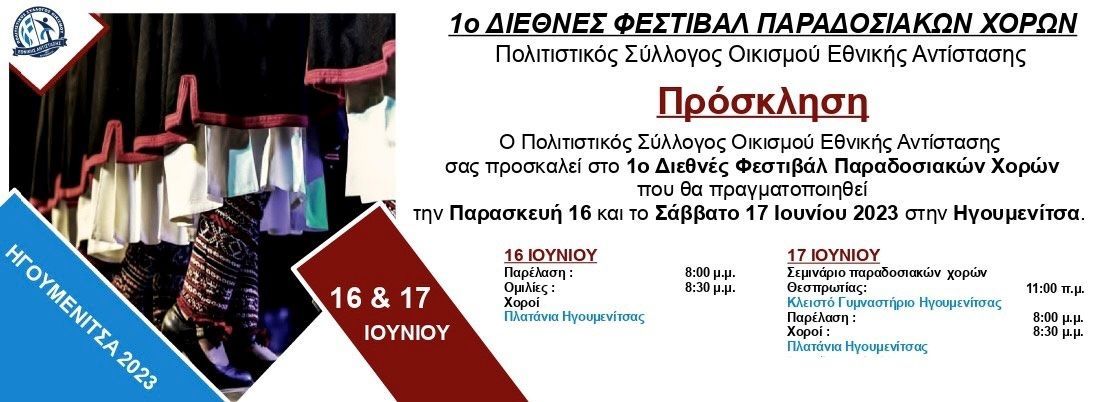 1ο Διεθνές Φεστιβάλ Παραδοσιακών Χορών από τον Πολιτιστικό Σύλλογο Οικισμού Εθνικής Αντίστασης_16 & 17 Ιουνίου 2023