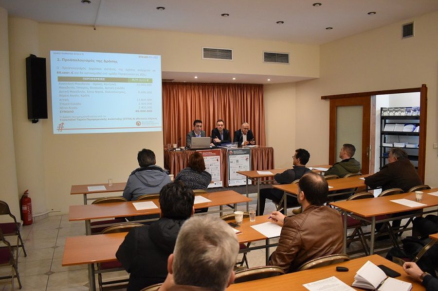 Στο Συνεδριακό Κέντρο του Επιμελητηρίου Θεσπρωτίας, έγινε παρουσίαση των ανωτέρω προγραμμάτων και ακολούθησε διαλογική συζήτηση και απαντήσεις σε ερωτήματα και απορίες των παρισταμένων, με παροχή χρήσιμων οδηγιών για την ορθή υποβολή των προτάσεων και διευκρινίσεων τόσο για την υποβολή προτάσεων όσο και για την υλοποίηση των έργων με κύριο στόχο την ομαλή και χωρίς απώλειες, εκταμίευση της δημόσιας χρηματοδότησης. Παράλληλα οι υποψήφιοι επενδυτές εξέφρασαν την δυσαρέσκεια τους σχετικά με τις απαιτούμενες ΕΜΕ (ετήσιες μονάδες εργασίες), καθώς αποκλείουν μεγάλο αριθμό υποψηφίων από την συμμετοχή τους στα ανωτέρω προγράμματα.