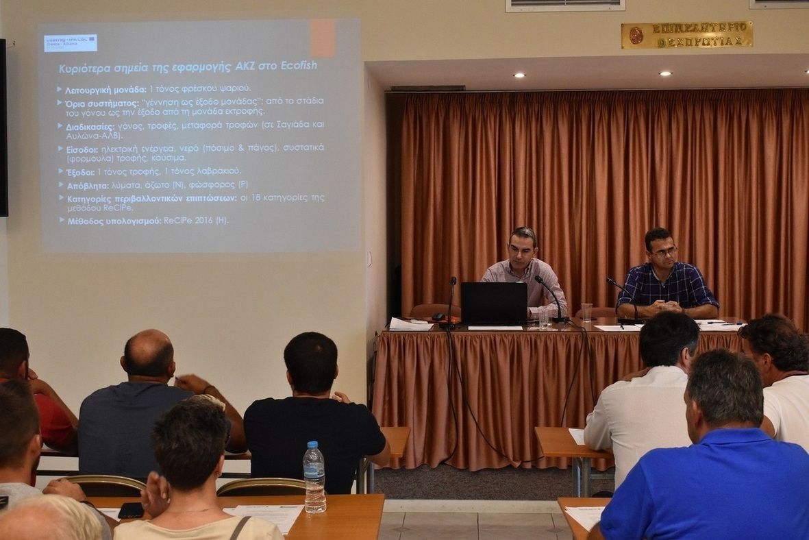 Ενημερώνουμε ότι το Επιμελητήριο Θεσπρωτίας, Εταίρος 2 στο Έργο ECO-FISH «Οικολογικό αποτύπωμα στη διασυνοριακή θαλάσσια ιχθυοκαλλιέργεια στη Σαγιάδα (Ελλάδα) και νότια Αλβανία», πραγματοποίησε δύο (2) Σεμινάρια (Θερινά Σχολεία), στο πλαίσιο του Παραδοτέου 5.2.1 «Σεμινάρια (Θερινά Σχολεία) στην Ελληνική Επιλέξιμη Περιοχή», τα οποία αποσκοπούσαν στην ενημέρωση των συμμετεχόντων σε θέματα σχετικά με τις υδατοκαλλιέργειες και ειδικότερα, στην απόκτηση γνώσεων των επαγγελματιών υδατοκαλλιεργητών, οι οποίες θα οδηγήσουν στην αναβάθμιση της παραγωγής τους.