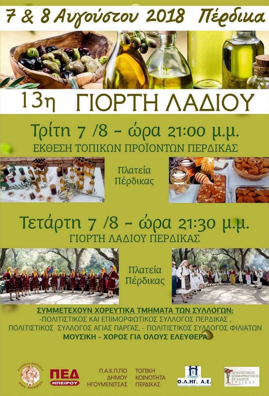 Πέρδικα 2018_Έκθεση Αγροτικών & Τοπικών Προϊόντων & 13η Γιορτή Λαδιού Πέρδικας_07 & 08.08.2018
