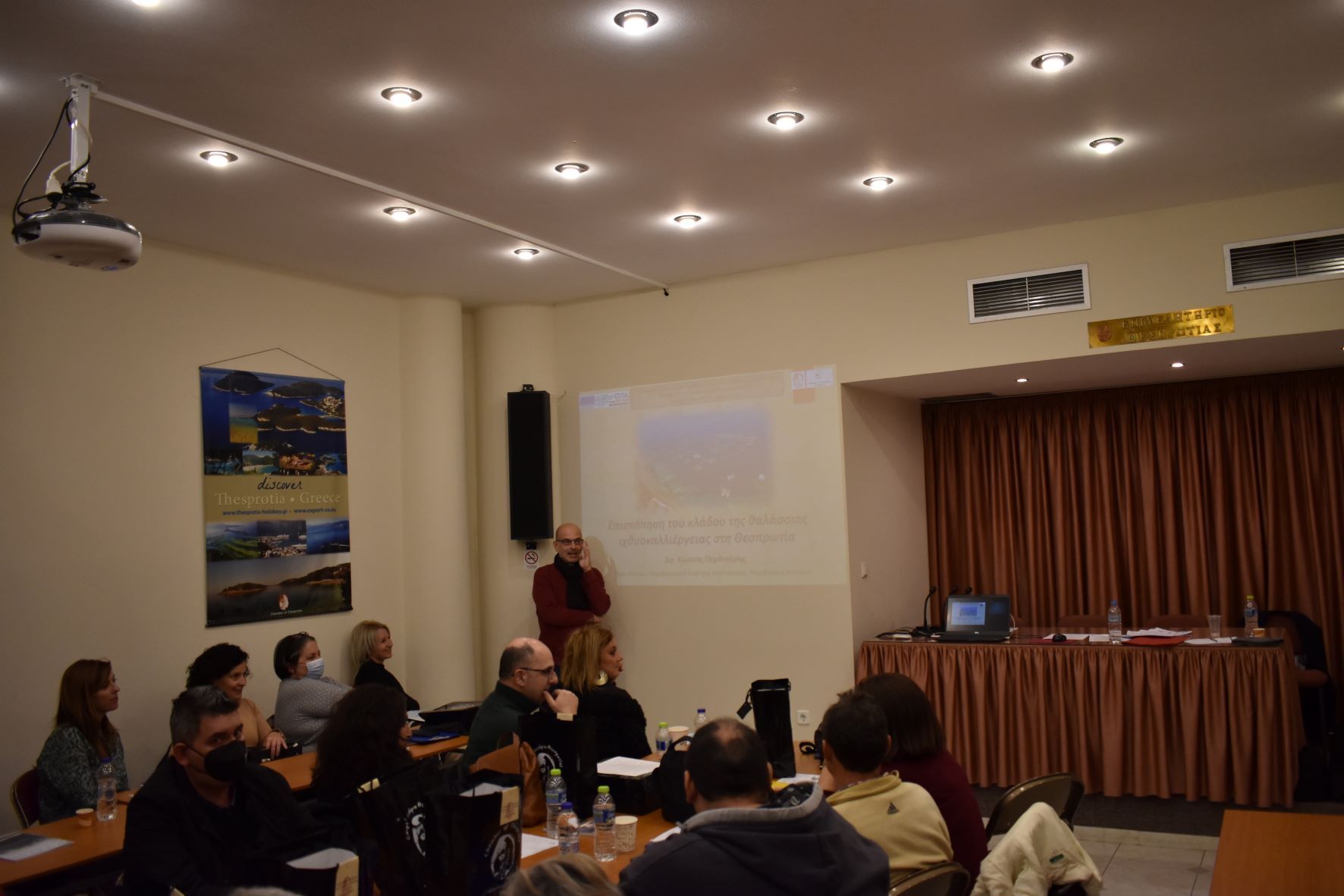 ü «Συνοπτική παρουσίαση: Α. Του Επιμελητηρίου Θεσπρωτίας, Β. της Πράξης: «Πρόγραμμα Ανάδειξης και Προβολής Προϊόντων Ιχθυοκαλλιέργειας Θεσπρωτίας», Γ. Της συνεργασίας με ΚΕΠΕΑ ΦΙΛΙΑΤΩΝ & Σύλλογο Υδατοκαλλιεργητών Θεσπρωτίας για την υλοποίηση του Υποέργου 10, από τον κο Πέτρο Ζουμπούλη, Διοικητικό Προϊστάμενο & Υπεύθυνο Έργου του Επιμελητηρίου Θεσπρωτίας