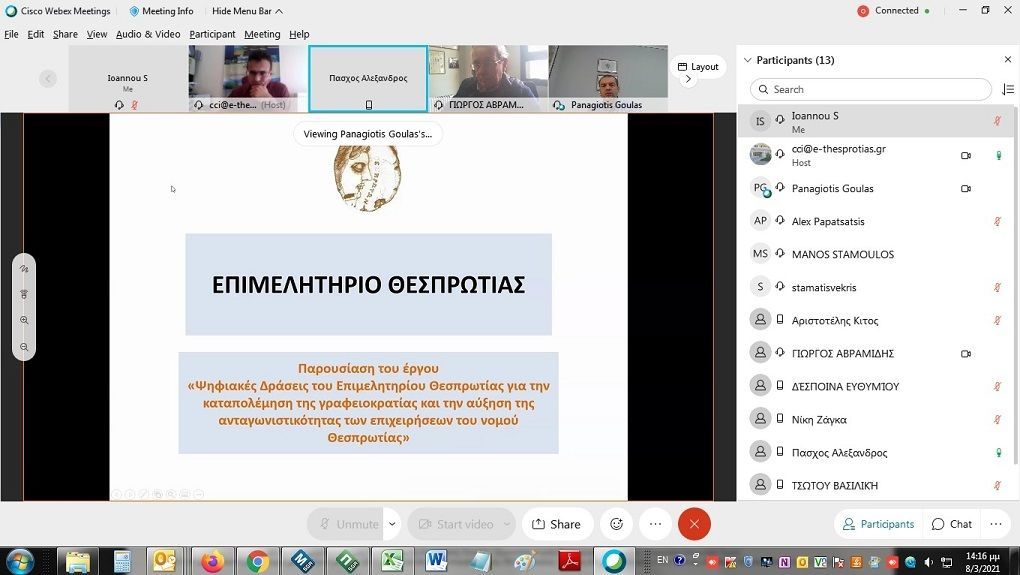 Το Επιμελητήριο Θεσπρωτίας ενημερώνει ότι εχθές Δευτέρα 08 Μαρτίου 2021 και ώρα 14:00 έως και 15:30 πραγματοποιήθηκε διαδικτυακή ενημερωτική εκδήλωση για το έργο «Ψηφιακές Δράσεις του Επιμελητηρίου Θεσπρωτίας για την καταπολέμηση της γραφειοκρατίας και την αύξηση της ανταγωνιστικότητας των επιχειρήσεων του νομού Θεσπρωτίας», που χρηματοδοτείται από το Ευρωπαϊκό Ταμείο Περιφερειακής Ανάπτυξης (ΕΤΠΑ) μέσω του Επιχειρησιακού Προγράμματος «Ήπειρος 2014-2020» της Περιφέρειας Ηπείρου.