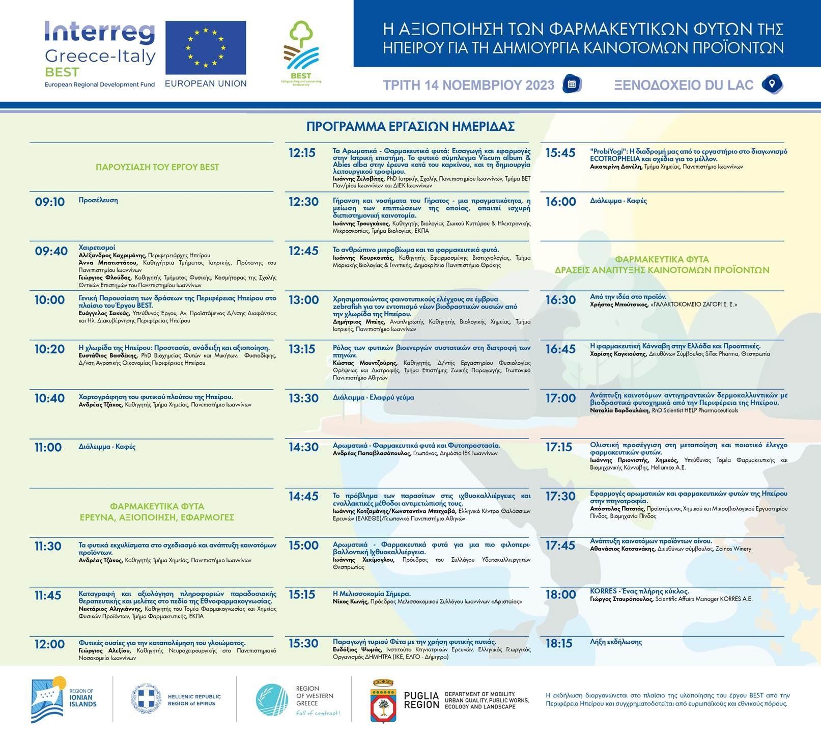 Περιφέρεια Ηπείρου_Ημερίδα με γενικό τίτλο «Η αξιοποίηση των φαρμακευτικών φυτών της Ηπείρου για τη δημιουργία καινοτόμων προϊόντων»_Ξενοδοχείο Du Lac, Ιωάννινα_14.11.2023