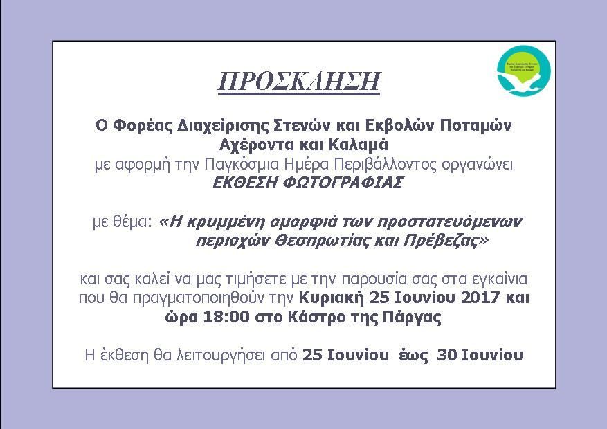 Φορέας Διαχείρισης Στενών και Εκβολών Ποταμών Αχέροντα Καλαμά_Έκθεση φωτογραφίας με θέμα: Η Κρυμμένη ομορφιά των προστατευόμενων περιοχών Θεσπρωτίας και Πρέβεζας_Κάστρο Πάργας_25.06.2017