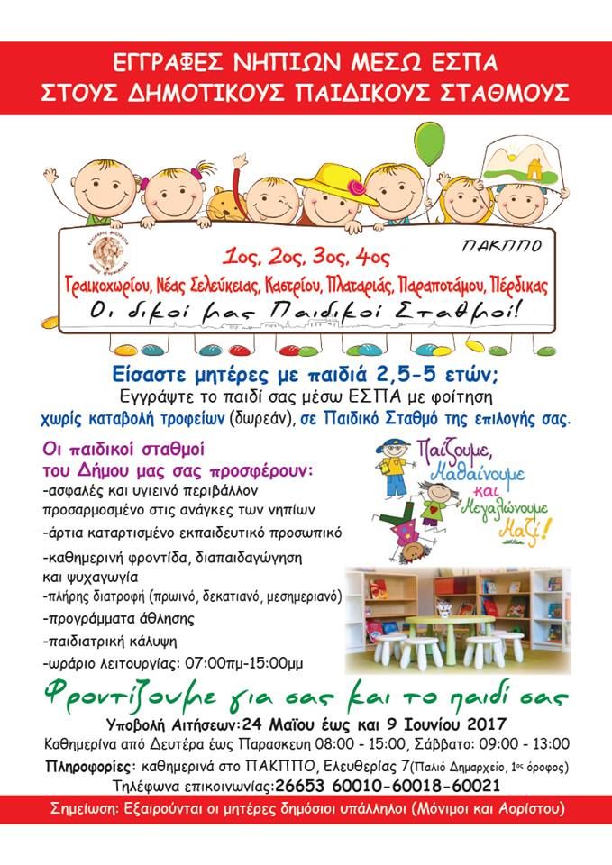Δήμος Ηγ/τσας_Εγγραφές Νηπίων μέσω ΕΣΠΑ στους Δημοτικούς Παιδικούς Σταθμούς