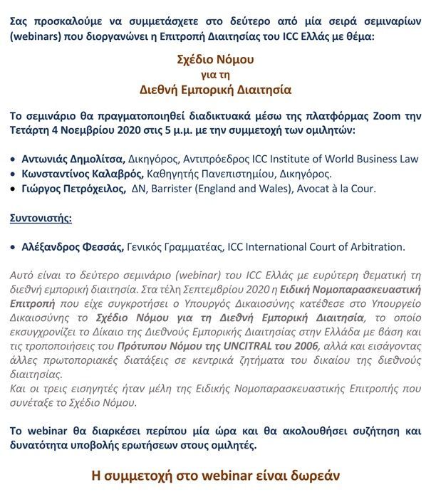 ICC Ελλάς_2ο Webinar Διαιτησίας_04.11.2020