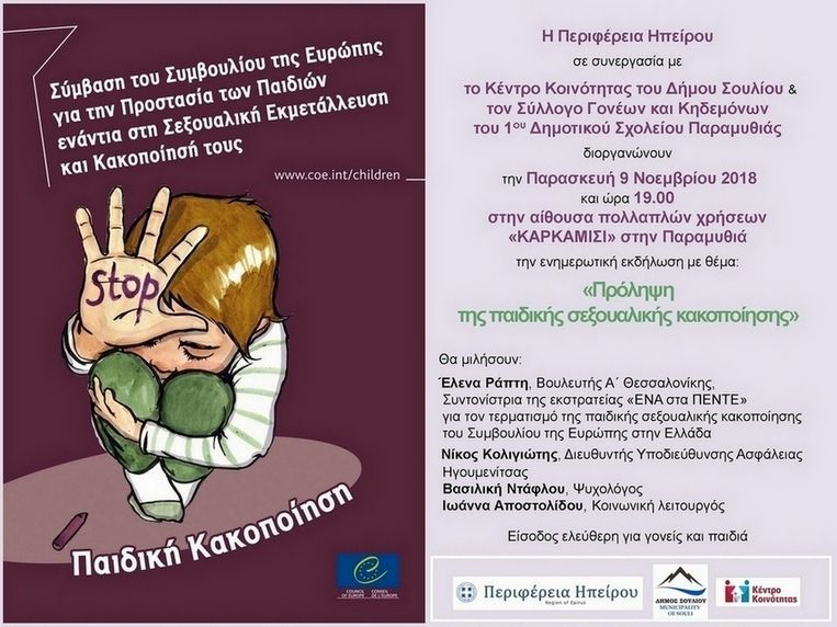 Ενημερωτική εκδήλωση: Πρόληψη της παιδικής σεξουαλικής κακοποίησης_Αίθουσα πολλαπλών χρήσεων ΚΑΡΚΑΜΙΣΙ, Παραμυθιά_09.11.2018