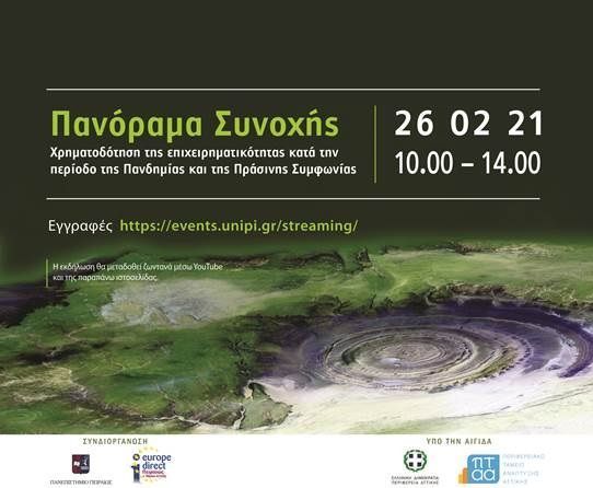 Πανεπιστήμιο Πειραιώς_Πανόραμα Συνοχής: Χρηματοδότηση της επιχειρηματικότητας κατά την περίοδο της Πανδημίας και της Πράσινης Συμφωνίας_26.02.2021