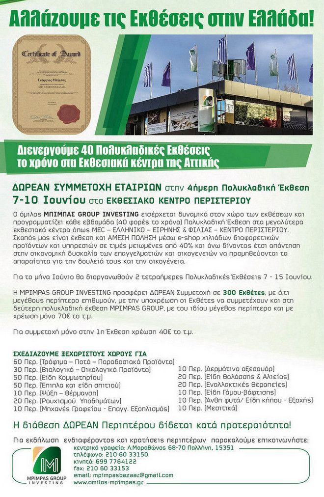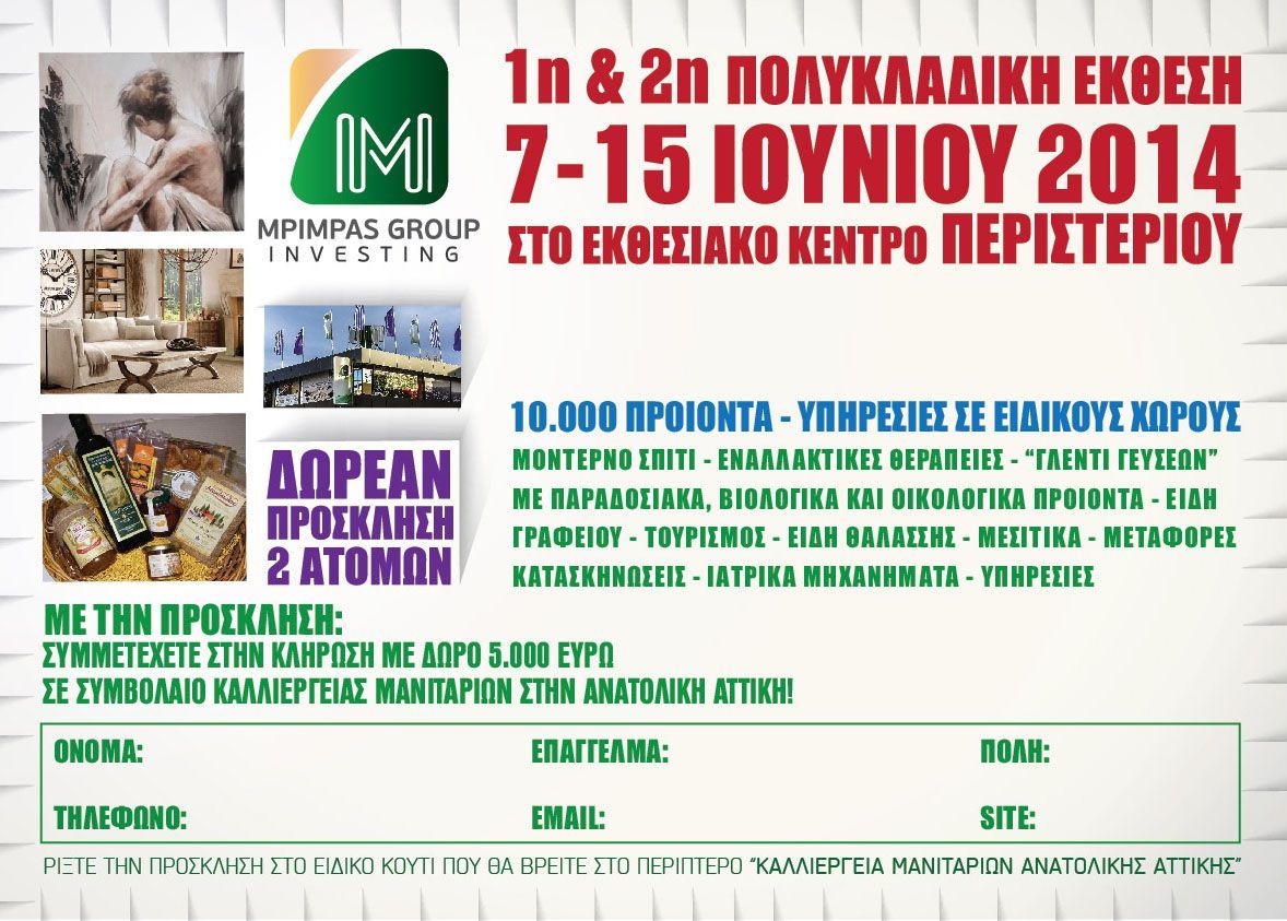 - Έκθεσεις: 7-10 & 12-15 ΙΟΥΝΙΟΥ 2014 στο Εκθεσιακό Κέντρο Περιστερίου