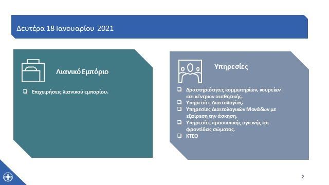 Επανεκκίνηση Οικονομικών Δραστηριοτήτων από 18.01.2021