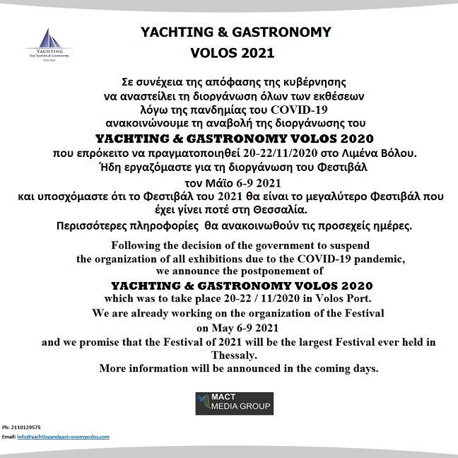 - Yachting Festival & Gastronomy Βόλος 6-9 Μαΐου 2021