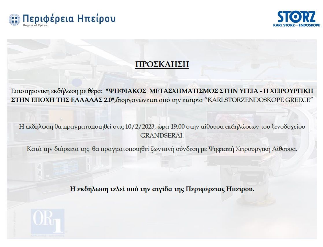 Περιφέρεια Ηπείρου_Πρόσκληση Επιστημονικής Εκδήλωσης "Ψηφιακός Μετασχηματισμός στην Υγεία"_Ξενοδοχείο GRANDSERAI, Ιωάννινα_10.02.2023