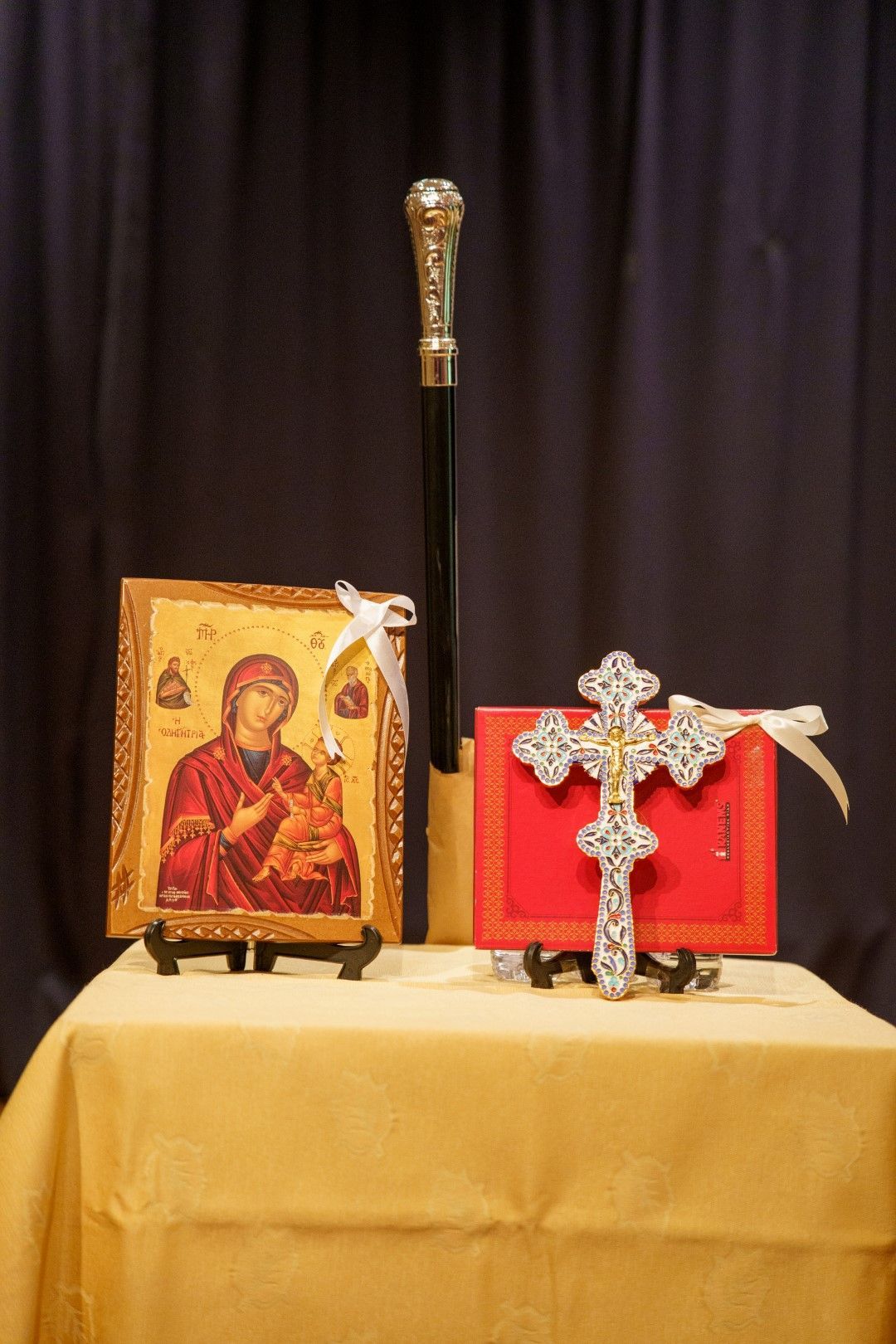 Με την ολοκλήρωση της εκδήλωσης ο Πρόεδρος παρέδωσε εκ μέρους του Δ.Σ. στον Σεβασμιότατο Μητροπολίτη συμβολικά δώρα για την ενθρόνισή του κι ανάληψη των καθηκόντων του, ένα Σταυρό Ευλογίας και ένα μπαστούνι για τους περιπάτους του στην Θεσπρωτία