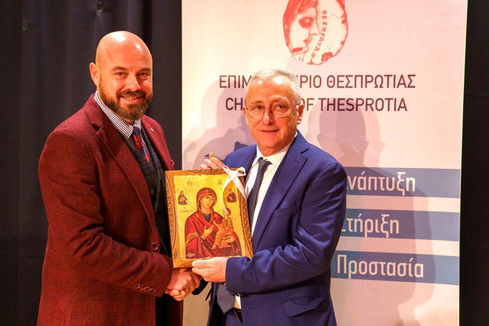 Την εκδήλωση, τίμησαν με την παρουσία τους ο Σεβασμιότατος Μητροπολίτης Παραμυθιάς, Φιλιατών, Γηρομερίου και Πάργας κ. Σεραπίων, ο Βουλευτής Θεσπρωτίας κος Γιόγιακας Βασίλειος, ο Περιφερειάρχης Ηπείρου κος Αλέξανδρος Καχριμάνης, ο πρώην Υπουργός και Βουλευτής Θεσπρωτίας κος Αντώνιος Μπέζας, ο πρώην Βουλευτής Θεσπρωτίας κος Ηλίας Βεζδρεβάνης, οι Δήμαρχοι: Σουλίου κος Αθανάσιος Ντάνης, Ηγουμενίτσας κος Παναγιώτης Νταής, και εκ μέρους του Δημάρχου Φιλιατών ο Αντιδήμαρχος κος Παρασκευάς Βλάχος, η Πρόεδρος του Συμβουλίου της Περιφέρειας Ηπείρου κα Σταυρούλα Μπραΐμη Μπότση, ο Θεματικός Αντιπεριφερειάρχης Τομέα Αλιείας και Ιχθυοκαλλιεργειών κος Νικόλαος Παπαγρηγορίου, ο Περιφερειακός Σύμβουλος κος Δημήτριος Γκαμπρέλας, Πρόεδροι Δημοτικών Συμβουλίων-Αντιδήμαρχοι-Δημοτικοί Σύμβουλοι των Δήμων της Θεσπρωτίας, ο Διοικητής του 628 ΤΠΖ κος Ιωάννης Καρράς, ο Διοικητής Περιφ/κής Διοίκησης Λιμενικού Σώματος Ηπείρου και Ιονίων Νήσων κος Παύλος Τιφτικίδης, ο Λιμενάρχης Θεσπρωτίας κος Κωνσταντίνος Κορίζης, η εκπρόσωπος του Επιμελητηρίου Πρέβεζας κα Αγγελική Κωνσταντινίδη, ο Υπεύθυνος της ΓΣΕΒΕΕ Παραρτήματος Ηπείρου κος Χρήστος Τάτσης, εκπρόσωποι εμπορο-επαγγελματικών και επιστημονικών συλλόγων και φορέων του νομού, πρώην Μέλη ΔΣ του Επιμελητηρίου, τα μέλη του ΔΣ και πλήθος μελών του Επιμελητηρίου.