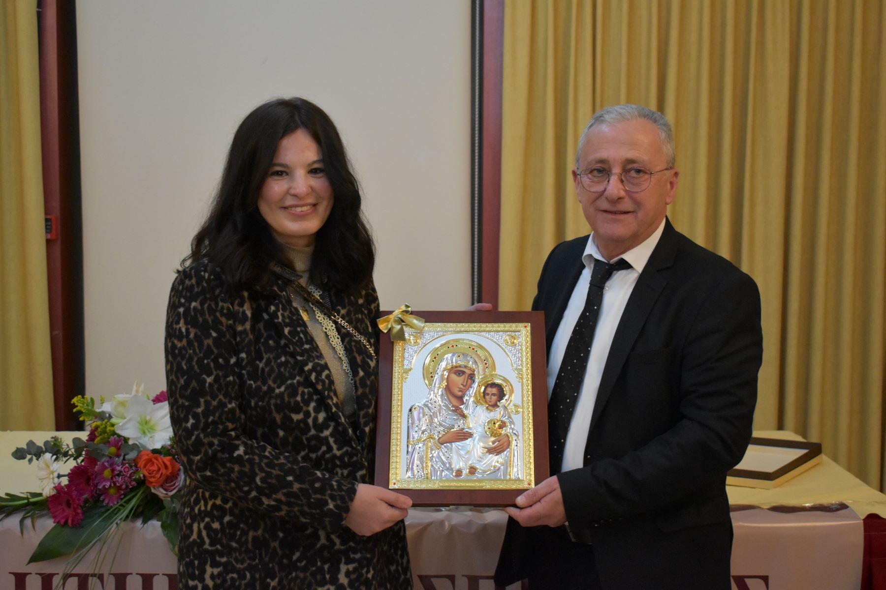 Η Τυχερή της εκδήλωσης παρέλαβε από τον Πρόεδρο του Επιμελητηρίου μία θρησκευτική εικόνα.