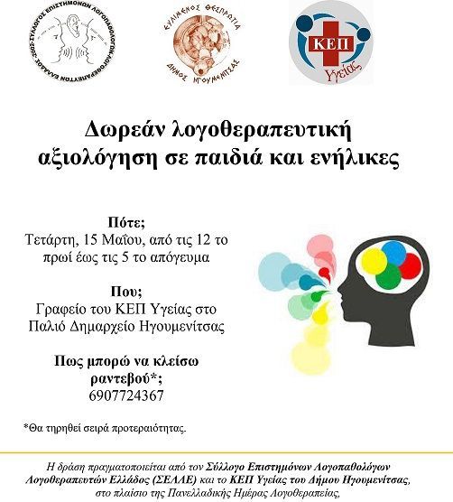 ΚΕΠ Υγείας Δήμου Ηγουμενίτσας_Δωρεάν λογοθεραπευτική αξιολόγηση σε παιδιά και ενήλικες