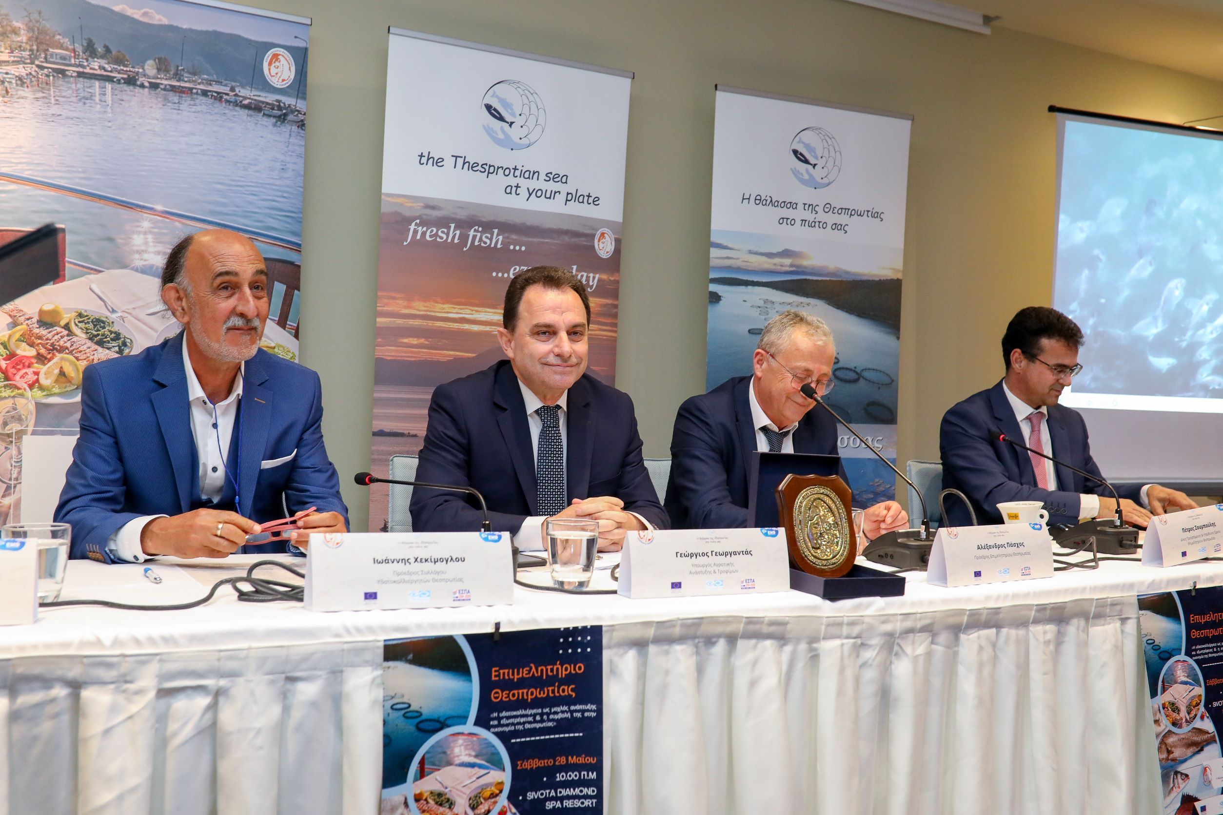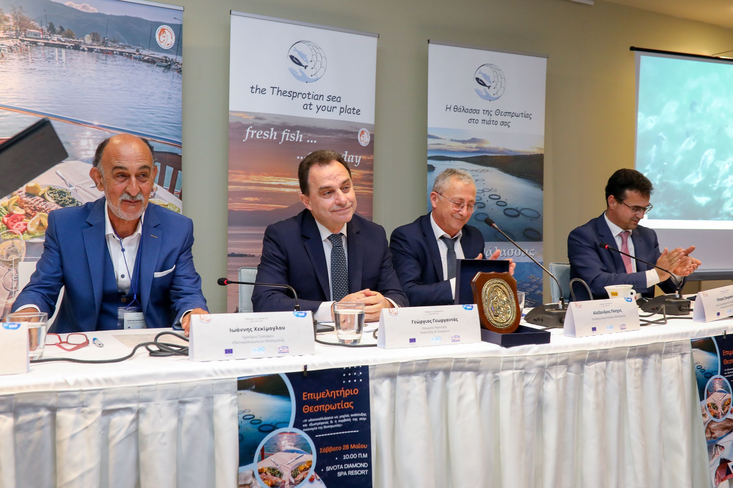 «Παρουσίαση Πράξης: Πρόγραμμα Ανάδειξης και Προβολής Προϊόντων Θαλάσσιας Ιχθυοκαλλιέργειας Θεσπρωτίας.» από τον κο Πέτρο Ζουμπούλη, Δ/κο Προϊστάμενο & Υπεύθυνος Έργου του Επιμελητηρίου Θεσπρωτίας (έκλεισε με το σχόλιο του Υπουργού ότι αξίζει να υπάρξει συνέχεια στην υλοποίηση Πράξεων από το Επιμελητήριο Θεσπρωτίας αφού πέτυχε την υλοποίηση τόσων πολλών δράσεων με τον μικρό διαθέσιμο προϋπολογισμό της Πράξης)