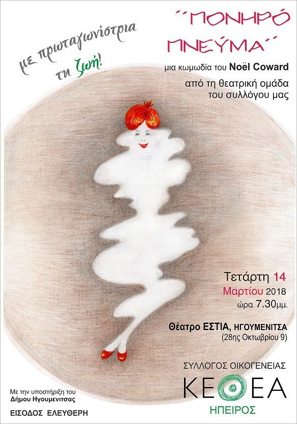 Πρόσκληση σε θεατρική παράσταση του ΚΕΘΕΑ Ηπείρου: "Πονηρό Πνεύμα"_Θέατρο Εστία, Ηγουμενίτσα_14.03.2018
