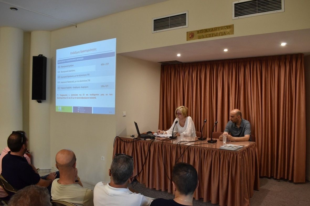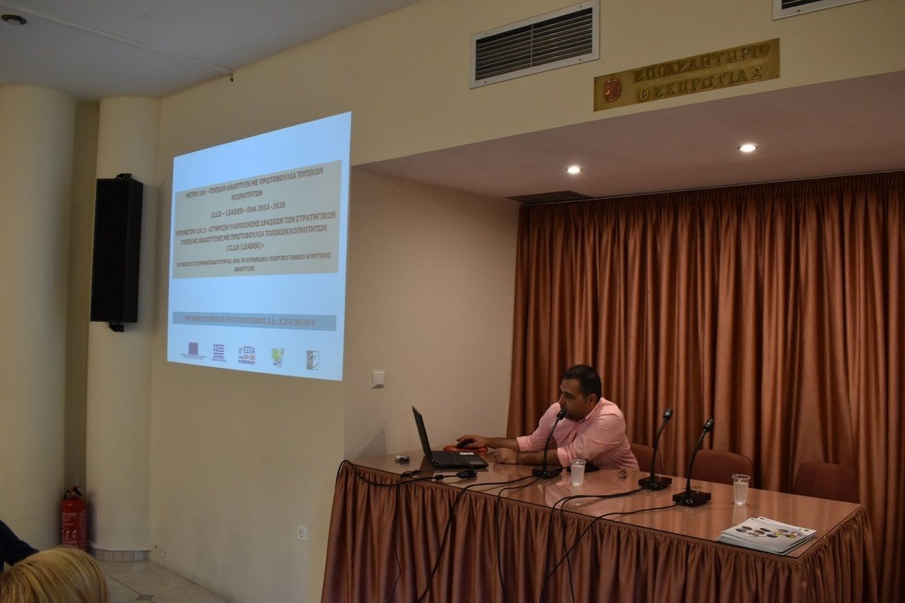 Το Επιμελητήριο Θεσπρωτίας, στα πλαίσια των προσπαθειών του για την ενημέρωση και πληροφόρηση των μελών του, πραγματοποίησε ενημερωτική εκδήλωση, σε συνεργασία με την Ειδική Υπηρεσία Διαχείρισης της Περιφέρειας Ηπείρου και την ΗΠΕΙΡΟΣ ΑΕ, για τις Δράσεις του Ε.Π Ήπειρος 2014 - 2020: Ηλεκτρονικό Επιχειρείν (e-Business) ΙΙ. Ενίσχυση υφισταμένων ΜμΕ για ανάπτυξη καινοτόμων προϊόντων & υπηρεσιών II, αλλά και της 1ης προκήρυξης ιδιωτικών έργων του τοπικού προγράμματος CLLD/LEADER Ιωαννίνων και Θεσπρωτίας του Προγράμματος Αγροτικής Ανάπτυξης της Ελλάδος (ΠΑΑ) 2014-2020, την Τρίτη 23/07/2019 και ώρα 19:30 στο Συνεδριακό Κέντρο του Επιμελητηρίου Θεσπρωτίας.