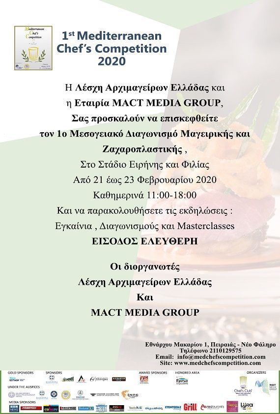 1ος Μεσογειακός Διαγωνισμός Μαγειρικής & Ζαχαροπλαστικής_Στάδιο Ειρήνης και Φιλίας_21-23.02.2020