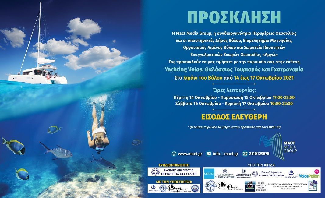 Η Mact Media Group, η συνδιοργανώτρια Περιφέρεια Θεσσαλίας και οι υποστηρικτές Δήμος Βόλου, Επιμελητήριο Μαγνησίας και Σωματείο Ιδιοκτητών Επαγγελματικών Σκαφών Θεσσαλίας «Αργώ»