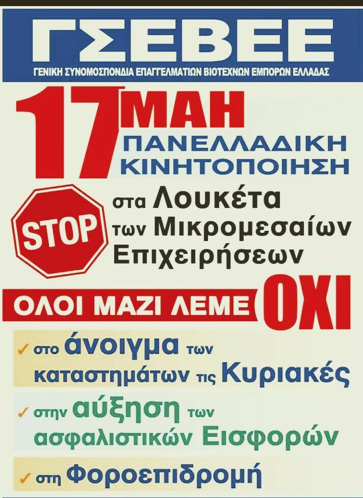 ΓΣΕΒΕΕ_17 Μάη Πανελλαδική Κινητοποίηση