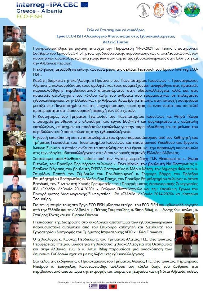 Υλοποίηση Τελικού Επιστημονικού συνεδρίου Έργου ECO-FISH - Οικολογικό Αποτύπωμα στις Ιχθυοκαλλιέργειες_14.05.2021