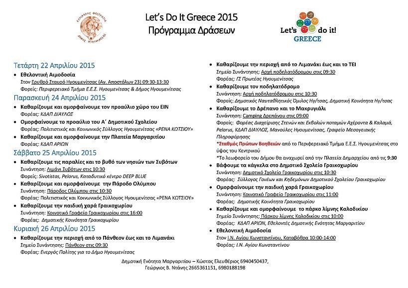 Let's Do It Greece 2015_Πρόγραμμα Δράσεων στον Δήμο Ηγουμενίτσας_22 έως 26 Απριλίου 2015.