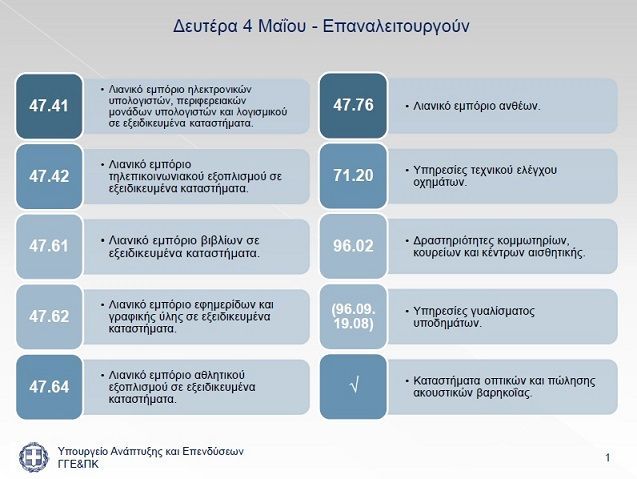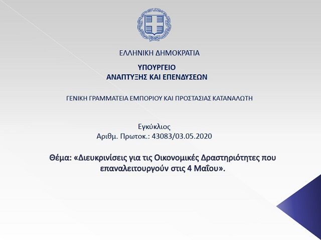 Εγκύκλιος Γενικής Γραμματείας Εμπορίου & Προστασίας του Καταναλωτή: Διευκρινίσεις για τις Οικονομικές Δραστηριότητες που επαναλειτουργούν στις 4 Μαΐου